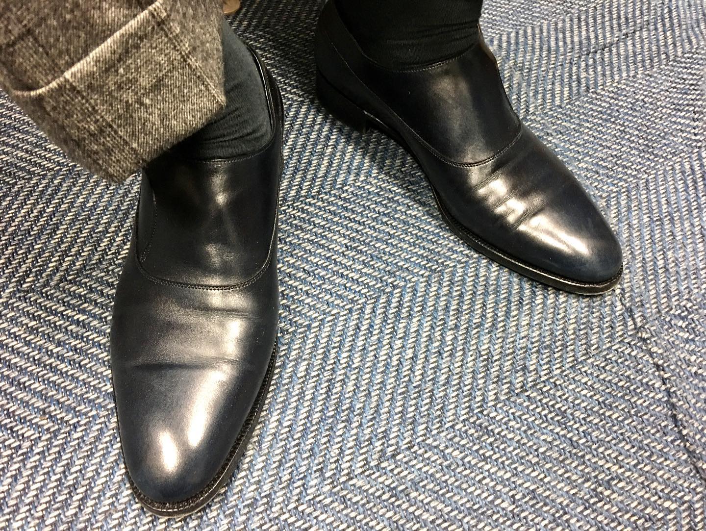2.ジョンロブ:私も大ファンのナポリの服が似合うお客様が履かれていたジョンロブの伊勢丹10周年モデルです!!キレイなネイビーカラーなのと、デザインがとっても素敵な靴です。お話に上がった靴が入荷しましたら、お知らせしますね!!