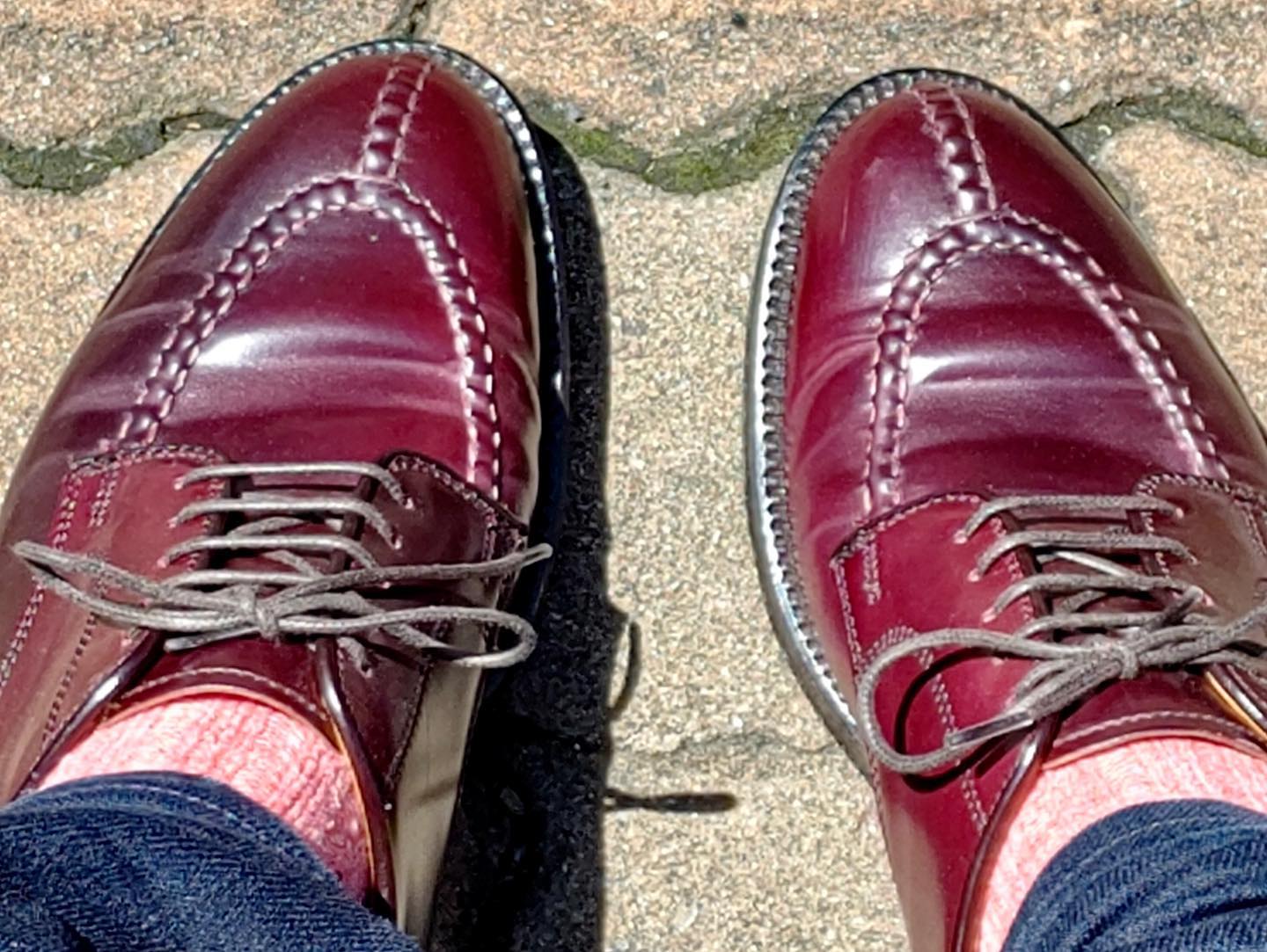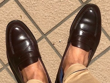 2.AL:数ヶ月前に当ストアで試着程度品をご購入頂いたお客様が、育て具合の写真を送ってくれました。ご注文を頂く際には嬉しい反面、少し寂しさもあるので、再会出来るのはとても嬉しいですね!!このオールデンは、とても良い時代の靴のため、色味も赤みがかって超キレイです